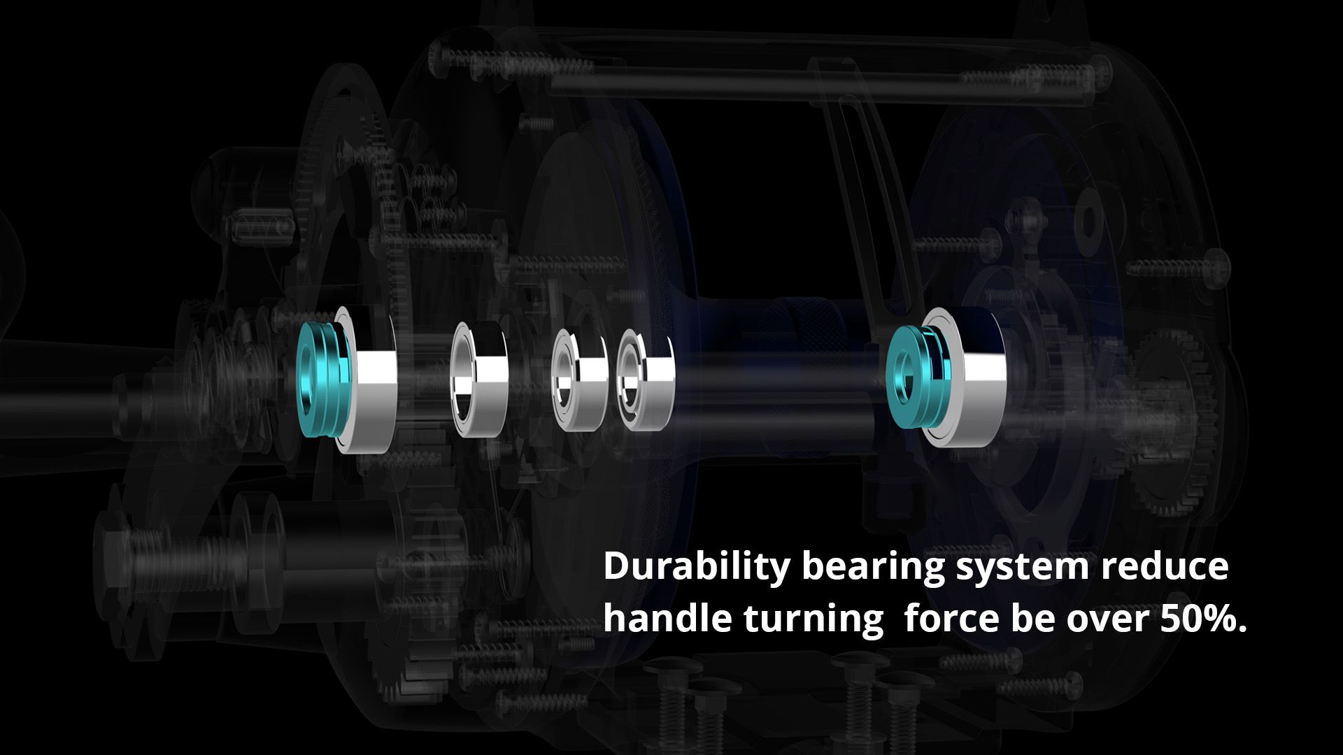 Εξοπλισμένο με 2 ειδικά ρουλεμάν ώσης, μειώνει την απαιτούμενη δύναμη περιστροφής της μανιβέλας κατά περισσότερο από 50%, κάνοντας το ψάρεμα πιο αποδοτικό και ξεκούραστο.